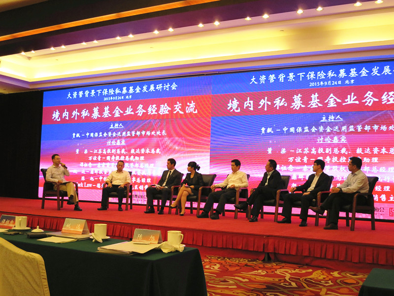 贾飙还主持了研讨环节,国寿投控总裁助理万谊青、泰康资产股权投资部总经理谭祖愈与江苏高投副总裁董梁、鼎晖投资夹层与信用投资执行董事姚远、中信产业基金董事总经理陈旭以及德意志银行北亚地区销售主管Mark Law一道,就保险私募基金配置、投资方向、投后管理以及面临的机遇与挑战等方面展开探讨。参与研讨的嘉宾普遍认为,设立保险私募基金政策的放开,将对保险资金配置和管理产生积极的影响,保险资金配置将更加多元化,管理将更加专业化;在当前环境下,夹层基金是个非常好的投资方式,其风险适度、回报中等,业绩波动低等特点非常符合保险资金的投资方向;在大资管背景下,保险私募基金的设立将通过更广阔的交流合作、跨业经营来实现共赢。