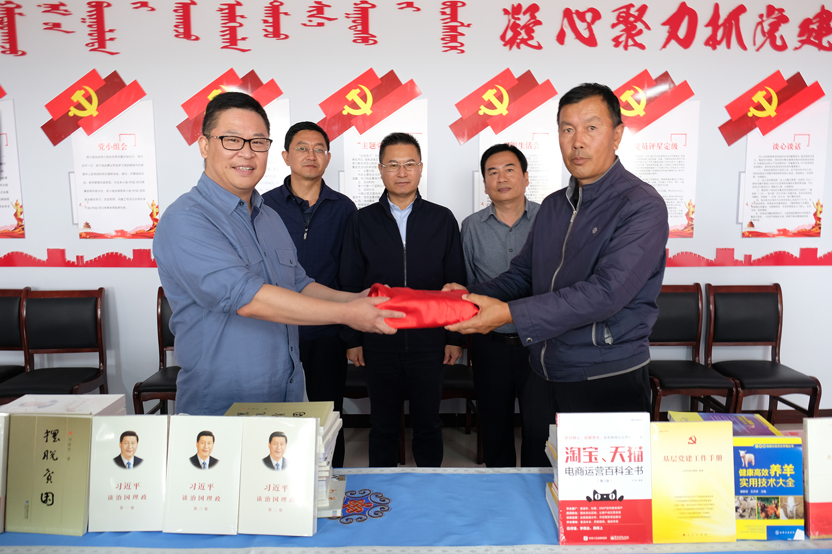 座谈会上,协会党委组织部长骆志威以及旗扶贫办负责同志、嘎查产业带头人、驻村第一书记等参与发言交流?;崆?,调研组一行与旗、苏木政府共同为嘎查党建活动阵地揭牌,并向阵地图书角赠与涉及基层党建、农业科技、畜牧种植、电子商务等内容的图书近200部。此外,调研组还代表协会向察右后旗“防贫?!毕钅拷芯柙哟蠖缘钡亓倨兑灼度巳悍榔斗癖U狭Χ?,全力巩固扶贫成果。
