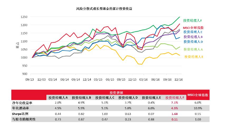 下面是一种多元资产配置策略下不同基金经理历年回报和风险指标,大家可以明显的看出,不同的基金经理在投资回报和风险控制上有非常明显的区别。