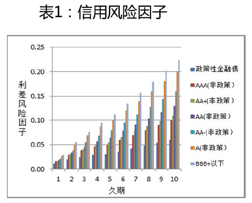 下面是信用结构对风险收益的影响。偿二代信用风险是与市场风险同级的两大风险之一,受到监管极大重视,信用风险又可分为利差风险和交易对手违约风险。其中利差风险适用于以公允价值计量的固收资产。风险因子和久期有关,久期越长,各信用等级间因子差距越大,但是历史数据显示,不同信用等级资产的利差随期限的增长变化很小。上面一张图是信用风险因子,下面一张图是很长一段历史时期不同系列级别的各个期限的利差水平,这两条线基本是平行状态。所以从两张图相结合,我们可以看到短期产品低信用等级风险收益比比较高,长期品种反之。所以在日常投资选择当中,个人认为从节约资本增强收益的角度,对于期限较短的资产信用结构可适当下沉,对于长期资产仍偏好高信用等级品种。